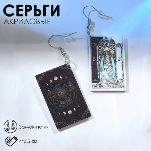 Серьги акрил "Таро" верховная жрица, цветные в серебре