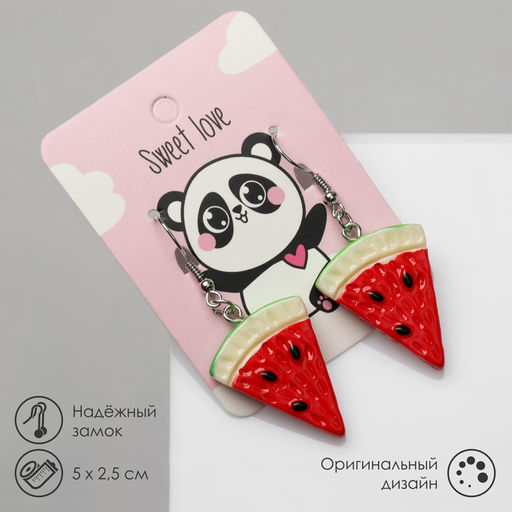 Серьги пластик "Вкусности" арбуз, цвет красно-зелёный