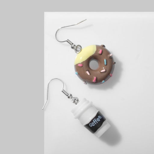 Серьги пластик "Кофе с пончиком", цветные в серебре