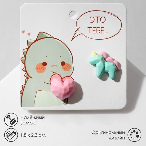 Серьги пластик "Абстракция" единорог и сердце, цветные