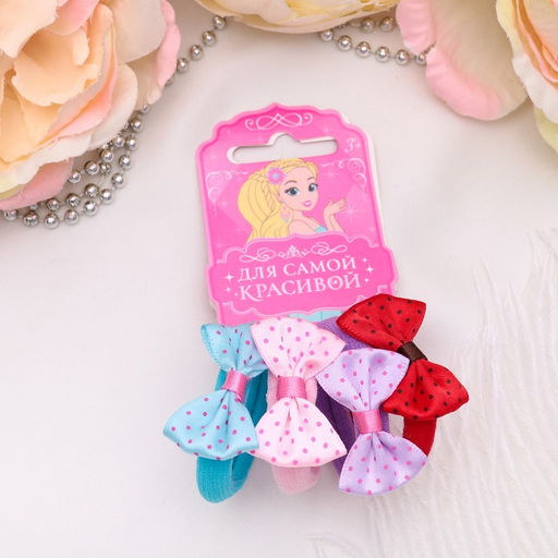 Цена за 6 шт. Резинка для волос "Бантик" (набор 4 шт) мелкий горох, микс