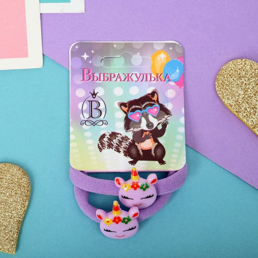 Цена за 6 шт. Резинка для волос "Маленькая радость" (набор 2 шт) единорожек цветочки, 4 см, сиреневый