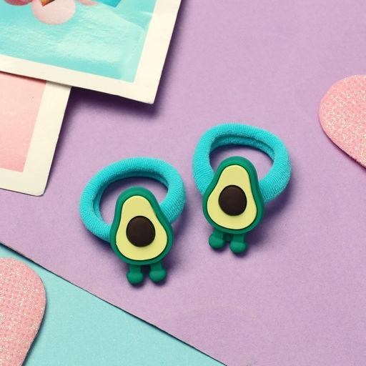 Цена за 6 шт. Резинка для волос "Крошка" (набор 2 шт) авокадо с ножками, 3 см, зелёный