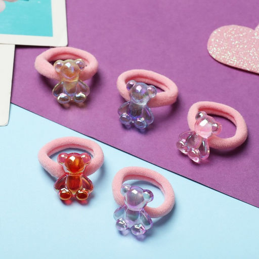 Цена за 6 шт. Резинка для волос "Малышка" (набор 10 шт) мишка глянец, микс