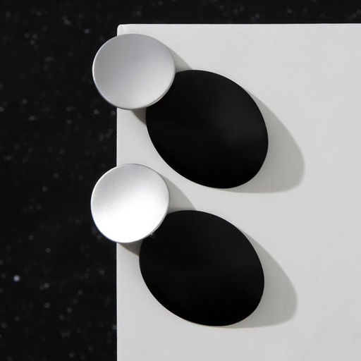 Серьги металл "Тренд" выпуклые диски, цвет чёрный в матовом серебре