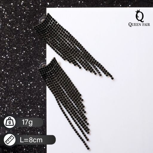 Серьги висячие со стразами "Водопад" ладья, цвет чёрный в серебре, 8см