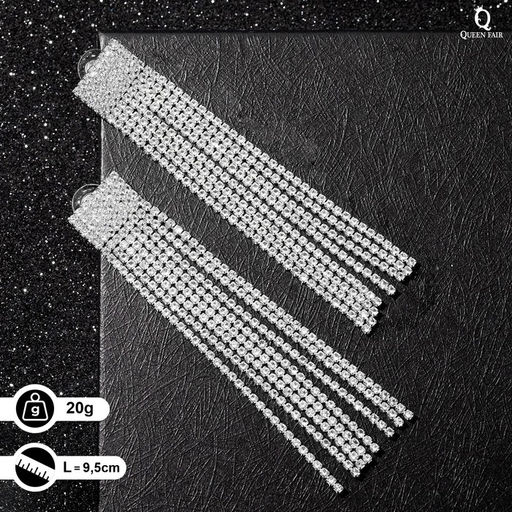 Серьги висячие со стразами "Водопад" квадрат, цвет белый в серебре, 9,5см