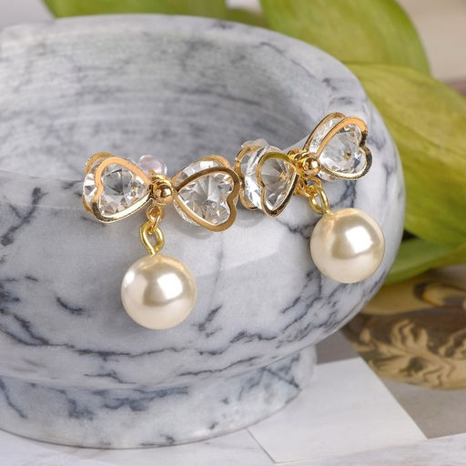 Серьги с жемчугом "Бантик" с бусиной, цвет белый в золоте