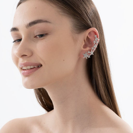 Серьга "Кафф" десять звёзд со стразами, цвет белый в серебре