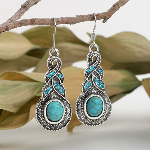 Серьги "Бирюзовый мир" коса, цвет голубой в серебре