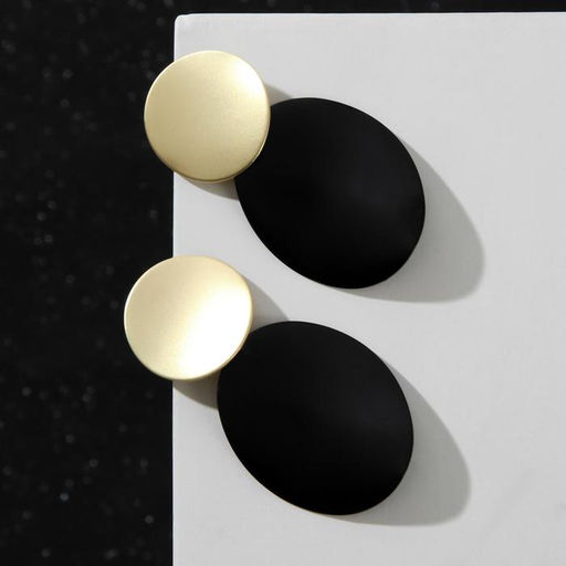 Серьги металл "Тренд" выпуклые диски, цвет чёрный в матовом золоте