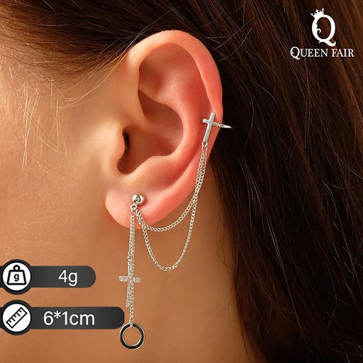 Серьга "Кафф" два креста с кругом, цвет белый в серебре