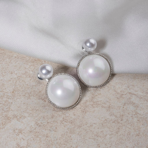 Серьги с жемчугом "Великолепие" два круга, цвет белый в серебре