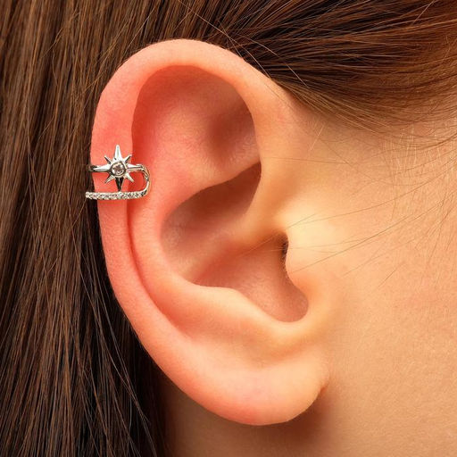 Серьга "Кафф" северная звезда, цвет белый в серебре