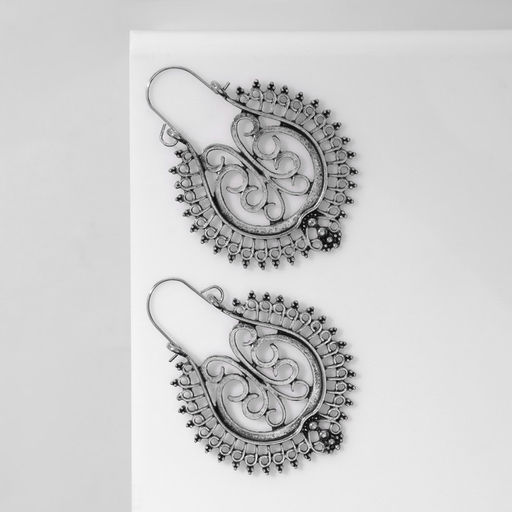 Серьги металл "Восток" узор в капле, цвет чернёное серебро