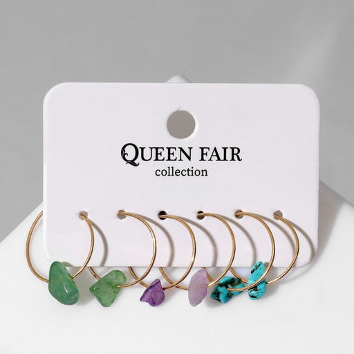 Набор серьги 3 пары "Дары", цветной в золоте