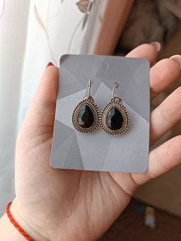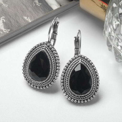 Серьги со стразами "Капля" изящность, цвет чёрный в чернёном серебре