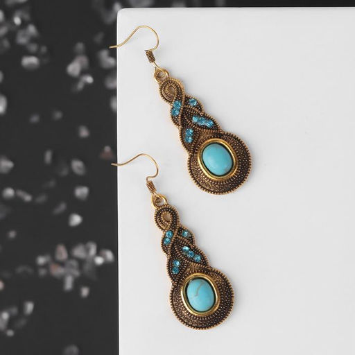 Серьги "Бирюзовый мир" коса, цвет голубой в чернёном золоте