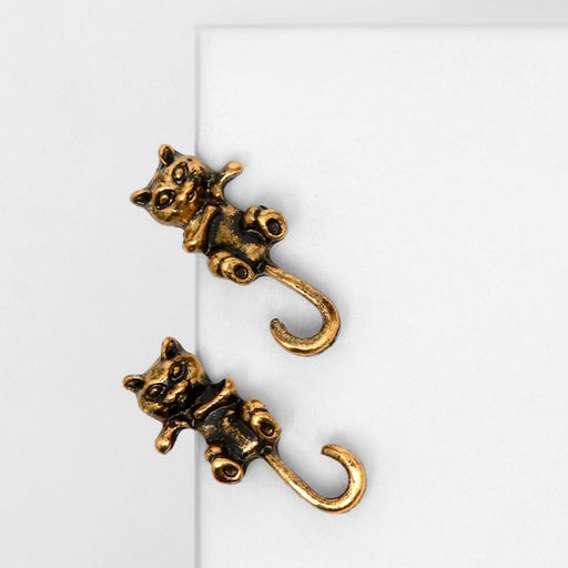 Серьги металл "Котята" хвостатые, цвет чернёное золото