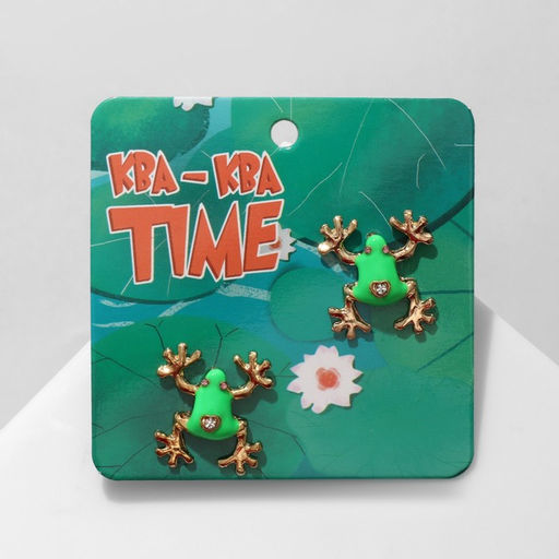 Серьги эмаль "Лягушки" с пальчиками, цветные в золоте