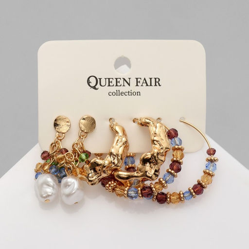 Набор 3 пары серёг "Этника" кольца, цвет бело-голубой в золоте