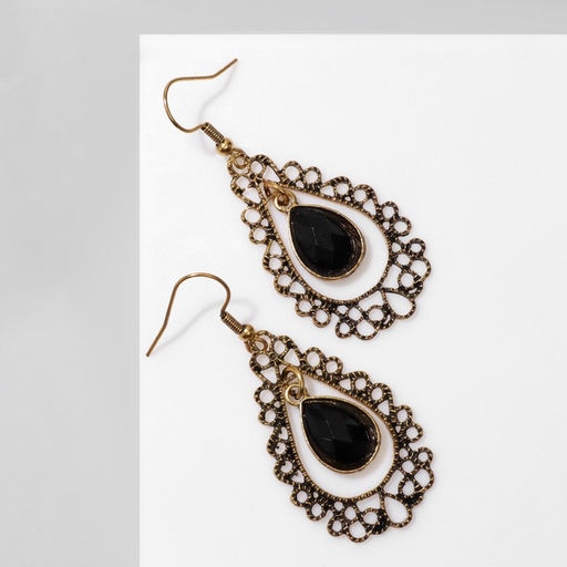 Серьги "Ажур" капля, цвет чёрный в чернёном золоте