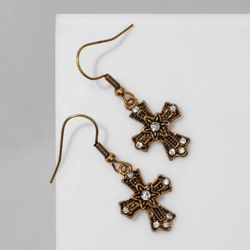 Серьги "Крестики" цветочные, цвет белый в чернёном золоте