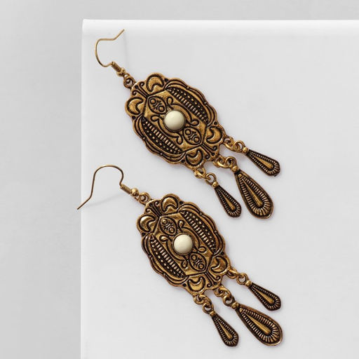 Серьги "Этника" трио, цвет белый в чернёном золоте