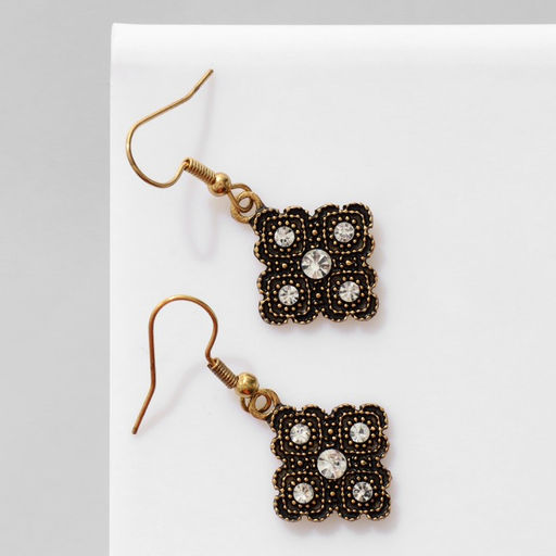 Серьги "Ромб" мини, цвет белый в чернёном золоте