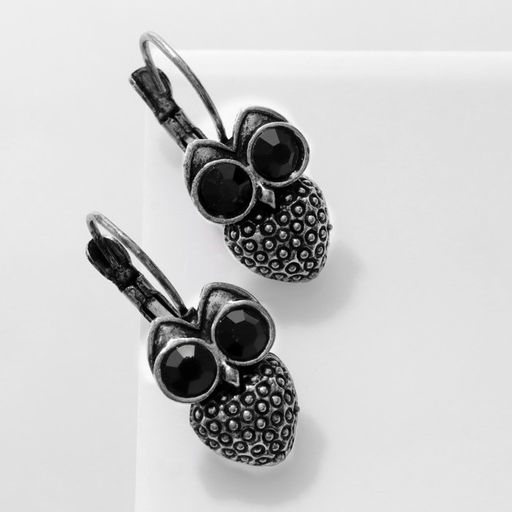 Серьги "Совы" на кольцах, цвет чёрный в чернёном серебре