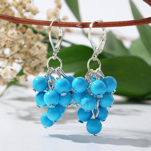 Серьги посеребрение шар №6 "Бирюза" гроздья