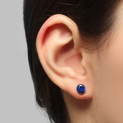 Серьги со стразами "Пусеты" сияние, круг, d=0,8, цвет синий в серебре