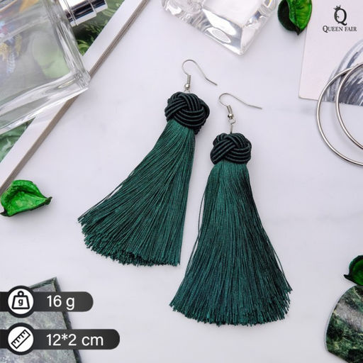 Серьги "Кисти" романс, цвет зелёный в серебре, длина кисти 10 см