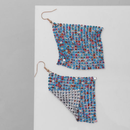 Серьги висячие "Ромб" кольчуга, цветы лютики, цвет красно-голубой, 9см