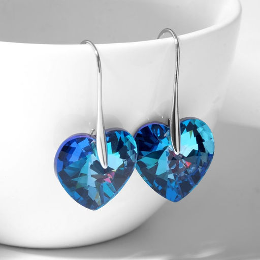 Серьги с кристаллами "Сияние сердца", цвет синий в серебре