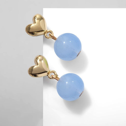 Серьги ассорти "Сердца" с бусинами, цвет голубой в золоте