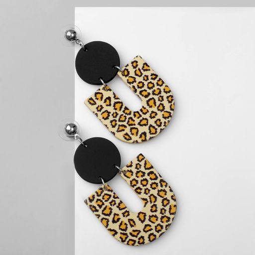 Серьги "Геометрия" леопард, цветные в серебре