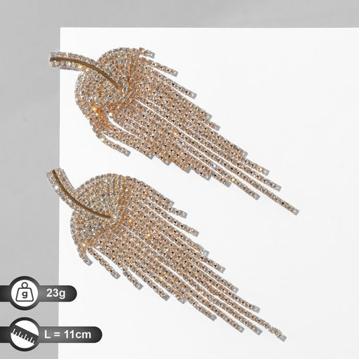 Серьги висячие со стразами "Грация" лесенка, цвет белый в золоте, 11см