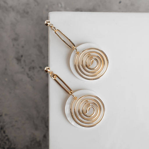 Серьги с перламутром "Сиа" спираль, цвет белый в золоте