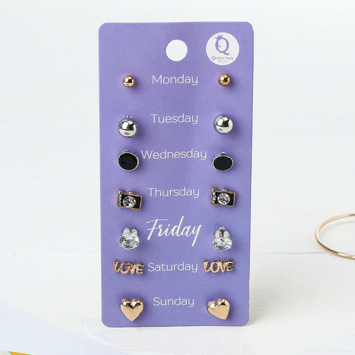 Пусеты 7 пар "На каждый день" набор вечерний, цвет МИКС