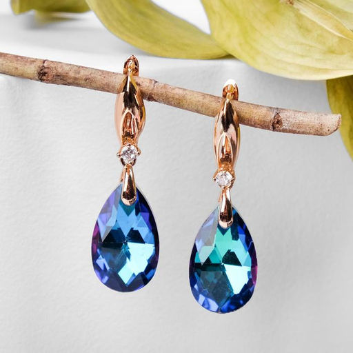 Серьги со стразами "Иллюзион" капля на овале, цвет бело-синий в золоте
