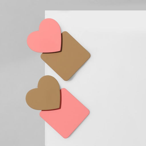 Серьги "Сердце" с квадратом, цвет розово-коричневый