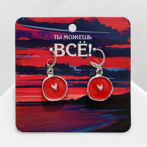 Серьги эмаль "Искусство" сердце, цвет красный в серебре