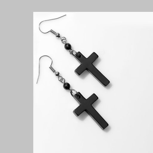 Серьги "Гематит" крестики, цвет чёрный в серебре