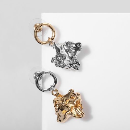 Серьги металл "Слиток" таяние, цвет серебряно-золотой