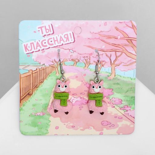 Серьги ассорти "Радость" ламы, цвет зелёно-розовый в серебре
