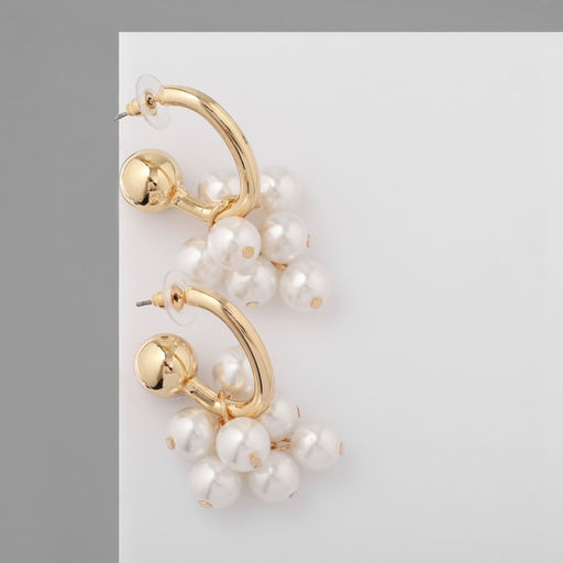 Серьги с жемчугом "Грозди" на кольце, цвет белый в золоте