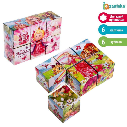 Цена за 3 шт. Кубики Принцессы картон, 6 штук, по методике Монтессори