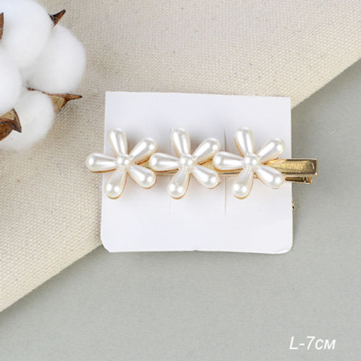 Заколка-зажим для волос 7 см Цветы / 2125-26 /уп 12/жемчуг