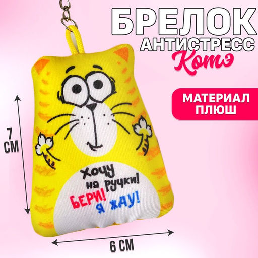 Брелок-антистресс Хочу на ручки!, кот, 6х7 см